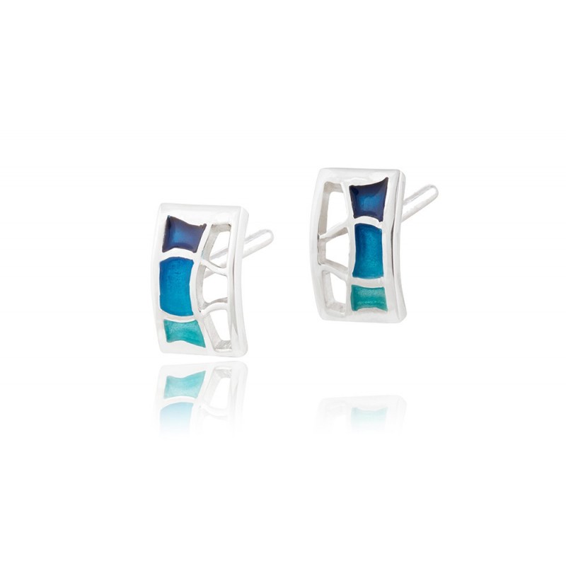 Eleganckie srebrne emaliowane kolczyki z kolekcji BCN-ART. Zainspirowana mozaikami Antonio Gaudiego kolekcja bazuje na sztuce emaliowania, czyli ozdabianiu biżuterii cienką, szklistą powłoką w różnych kolorach.