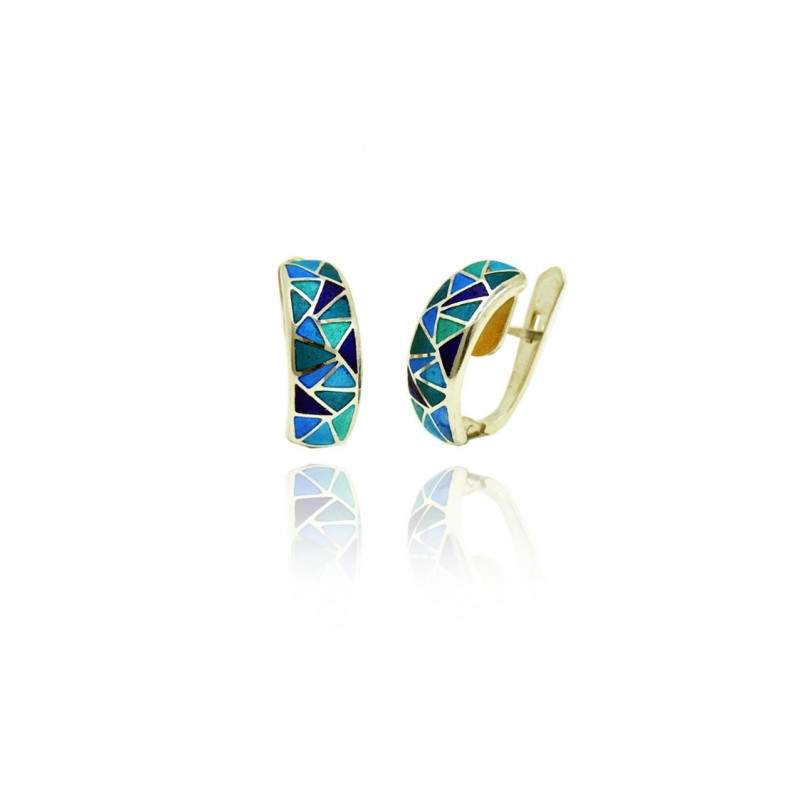 Eleganckie srebrne emaliowane kolczyki z kolekcji BCN-ART. Zainspirowana mozaikami Antonio Gaudiego kolekcja bazuje na sztuce emaliowania, czyli ozdabianiu biżuterii cienką, szklistą powłoką w różnych kolorach. Wymiary: 1.8 cm x 0.7 cm